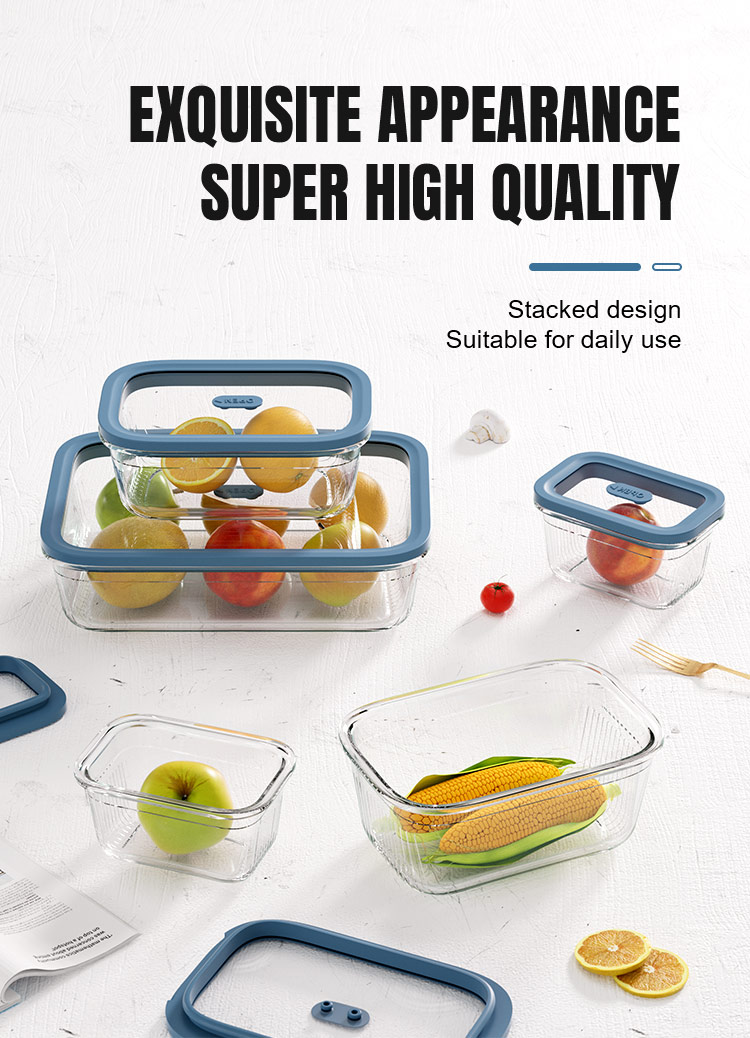 Disponibles en six tailles différentes pour répondre à tous vos besoins de rangement, des en-cas individuels aux repas familiaux. Nettoyage facile d'un simple coup d'éponge ou au lave-vaisselle (panier supérieur pour les couvercles en verre). Idéales pour conserver fruits et légumes colorés (comme les oranges, les pommes et le maïs présentés !), préparer vos déjeuners à l'avance ou organiser vos produits secs tels que céréales et noix.